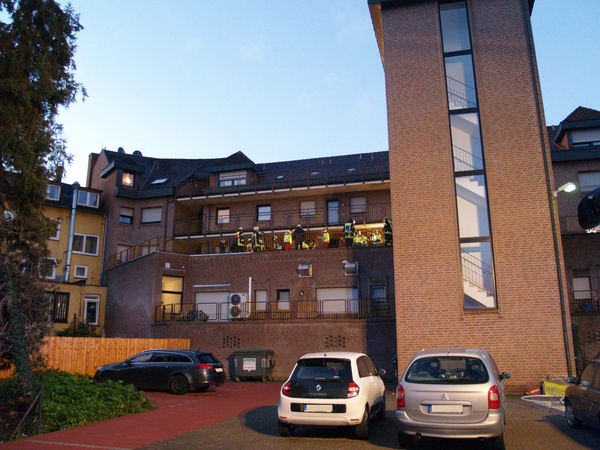 Bei Eintreffen der ersten Kräfte der Feuerwehr Kleve war aus dem Küchenfenster einer Wohnung im zweiten Obergeschoss eine leichte Rauchentwicklung erkennbar.
