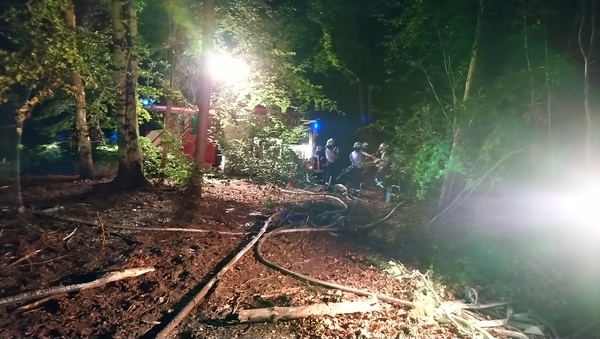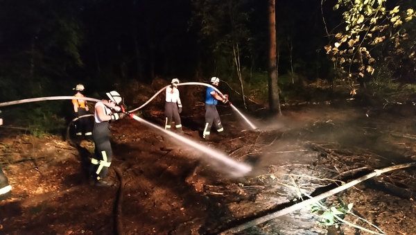 Ein Waldbrand im Reichswald, in der Nähe des Rupenbergs, beschäftigte gestern Abend (26. Juni 2020) die Feuerwehr Kleve. Die Flammen schlugen bei Eintreffen der ersten Kräfte bereits ca. 3 m an den Bäumen hoch. Zum Löschen mussten über 500 m Schlauchleitung in den Wald verlegt werden.