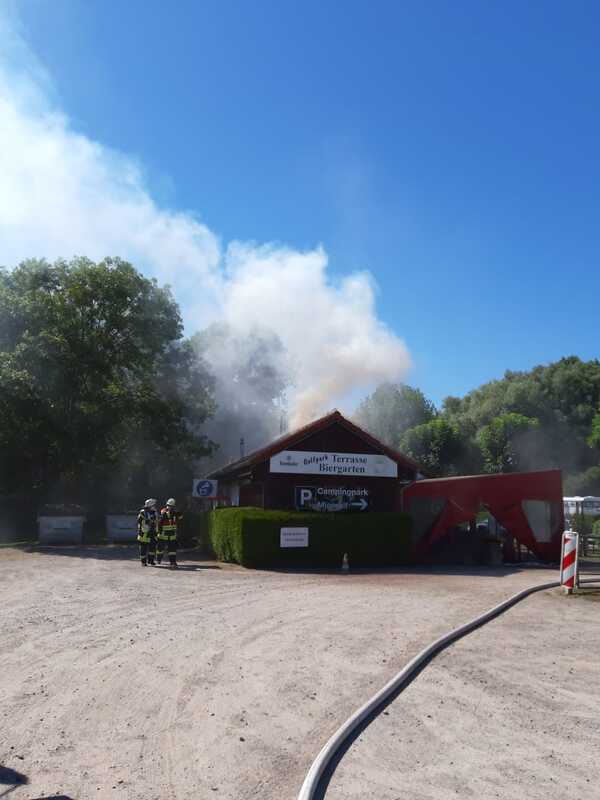 Zu einem Brand eines Gastronomie-Gebäudes auf einem Wohnmobilstellplatz in Rindern kam es gestern Nachmittag (31. Juli 2020). Die Feuerwehr Kleve wurde um 16:18 Uhr alarmiert. Zwei Personen mussten mit leichten Verletzungen ins Krankenhaus gebracht werden.