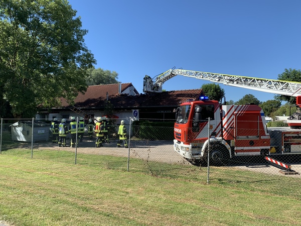 Das Gebäude brannte im Bereich des Dachstuhles und das Feuer war beim Eintreffen der Feuerwehr bereits durch das Dach nach außen gedrungen. Zwei Personen hatten Rauchgase eingeatmet und wurden vom Rettungsdienst ins Krankenhaus gebracht. Insgesamt vier Trupps wurden unter Atemschutz zur Brandbekämpfung eingesetzt: Ein Trupp ging in das Innere des Gebäudes vor, ein weiterer arbeitete von der Drehleiter aus mit einer Löschlanze im Dachbereich und zwei Trupps löschten von außen.
