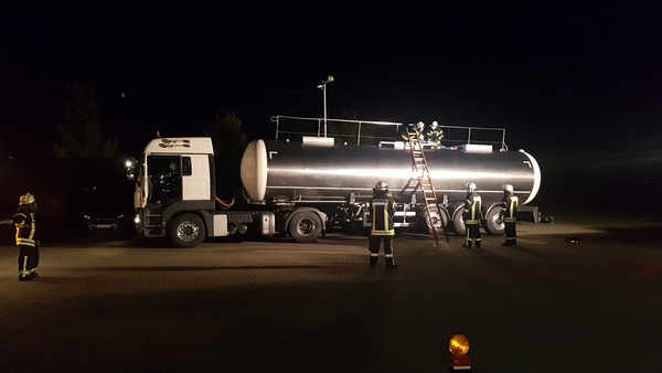 Ziel der Übung war die schonende Rettung einer verletzten Personen aus der Fahrerkabine, sowie die Rettung einer Person, welche Instandsetzungsarbeiten an einem der Domdeckel des Fahrzeuges durchgeführt hatte. Mit vereinten Kräften und unter Einsatz verschiedenster Hilfsmittel meisterten die Kameraden die Übung mit Bravour. Im Anschluss wurde den Kameraden dann die an einem LKW vorhandene Technik nocheinmal durch die beiden Ausbilder näher gebracht, sodas alle noch einmal die Möglichkeit hatten, sich mit dieser vertraut zu machen. Ein Dankeschön geht in diesem Zusammenhang nocheinmal an die Firma Geuyen und Rennings, die den Kameraden des Löschzugs den Sattelzug zur Übung zur Verfügung gestellt hatte.