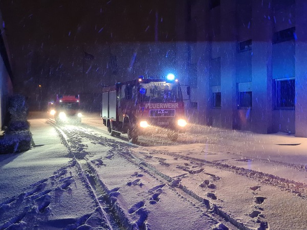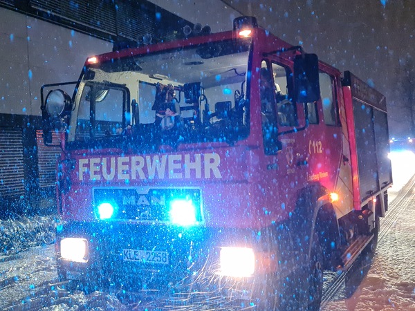 Trotz und wegen des Schneetreibens mussten die Klever Feuerwehrleute diese Nacht (7. Februar 2021) mehrmals ausrücken. Eine Brandmeldeanlage eines Unternehmens im Rinderner Industriegebiet schlug gegen 2 Uhr Alarm und später mussten noch zwei Sturmschäden beseitigt werden.