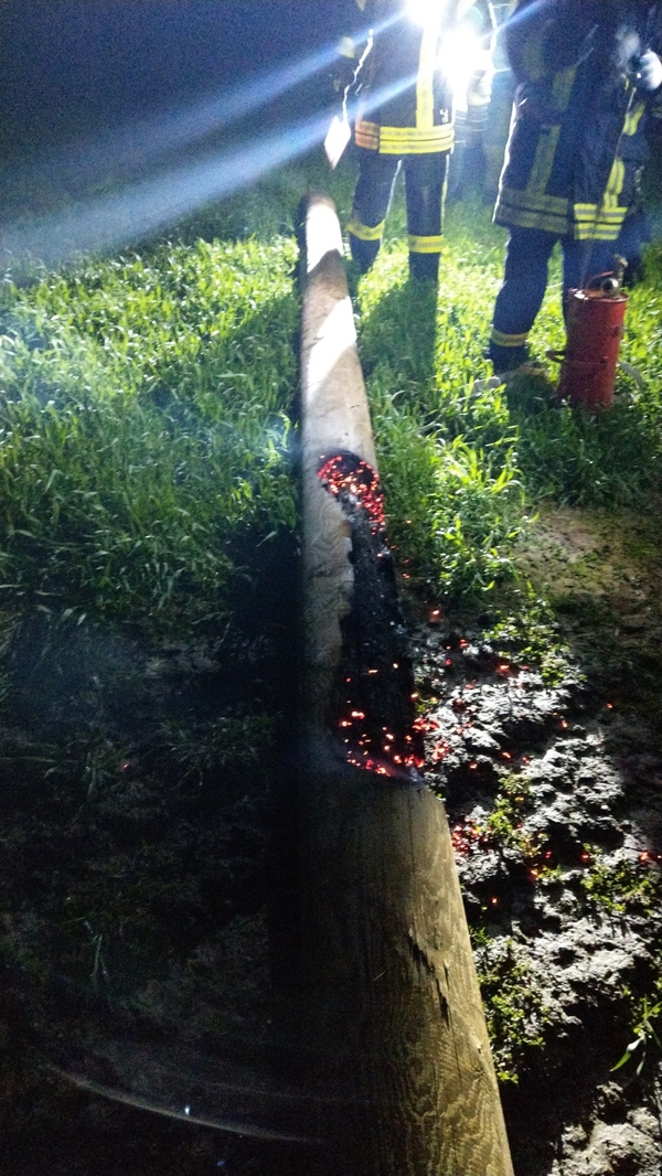Nachtrag (18. März) Nachdem der Mast heute ein zweites Mal zu brennen anfing, wurde er durch die Feuerwehr gefällt.