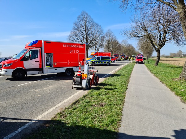 Ein zwischenzeitlich alarmierter Rettungshubschrauber war bereits im Anflug, wurde aber glücklicherweise nicht mehr benötigt und konnte wieder abdrehen. Im Einsatz waren der Löschzug Kellen, der Löschzug Rindern und die Löschgruppe Warbeyen. Der Einsatz dauerte ca. eine Stunde.