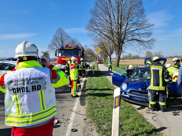 Am heutigen Dienstag (30. März 2021) kam es auf der Emmericher Straße zwischen Warbeyen und Kellen zu einem Verkehrsunfall, an dem drei PKW beteiligt waren. Gegen 12:30 Uhr ging die Alarmierung für die Feuerwehr Kleve ein.