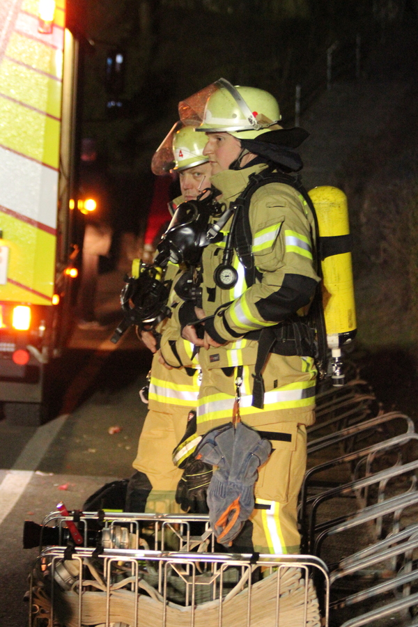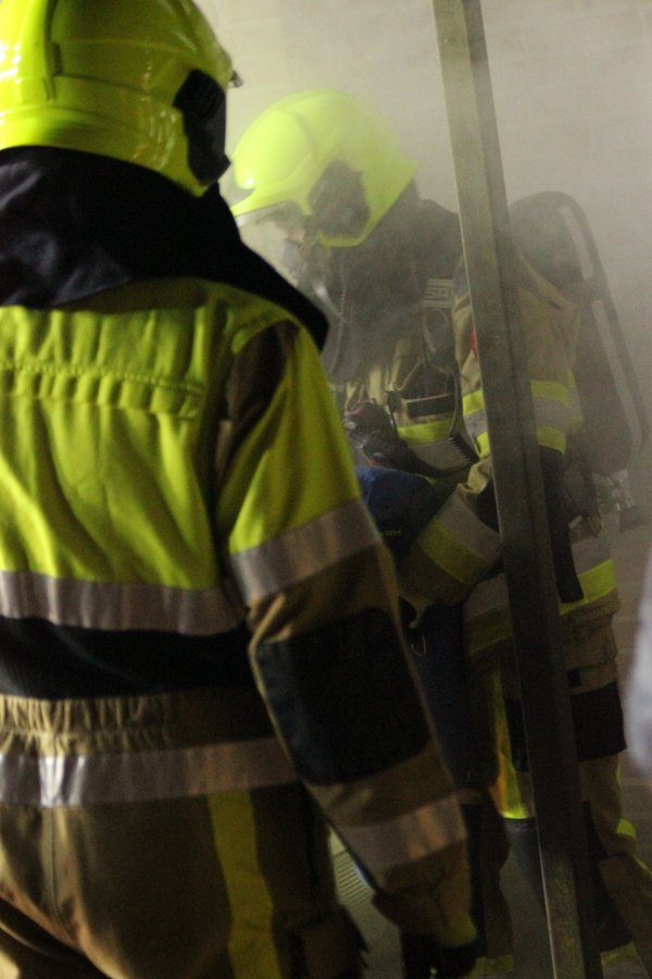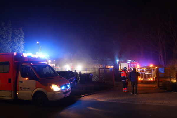 Doch nun zum Übungsszenario. Im Rahmen der Übung bekamen die beiden Einheiten die Meldung, dass es in einer fiktiven Unterkunft für Obdachsuchende zu einer Rauchentwicklung gekommen sei. Bei Eintreffen der ersten Einheiten fand Löschzugführer Jan-Peter Fruhen vom Löschzug Rindern eine sehr unübersichtliche Lage vor: So gab es an mehreren Stellen im Außenbereich brandverletzte Personen, die es zu retten galt. Des Weiteren befanden sich nach Aussage eines Brandverletzten noch sechs Personen im Inneren des Gebäudes. Zusätzlich waren noch zwei verletzte Personen auf dem Dach der benachbarten Umkleide einer Sportanlage, die ebenfalls auf Rettung warteten. Aufgrund der Vielzahl der verletzten Personen wurde daher umgehend der Malteser Hilfsdienst aus Kleve nachgefordert, um bei der Abarbeitung dieses sogenannten „Massenanfalles von Verletzten“ zu unterstützen.