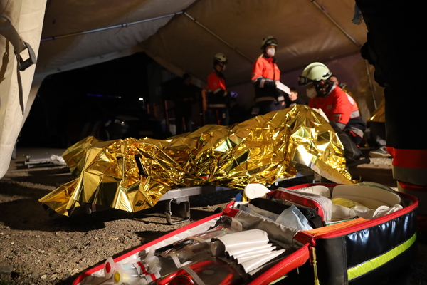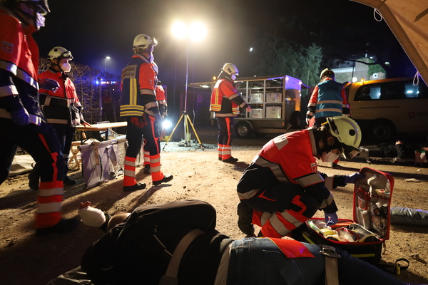 Nachdem das anfängliche Chaos sich lichtete und die einzelnen Aufgabenbereiche durch die Einsatzleitung klar definiert wurden, begannen im Anschluss an den verschiedenen Stellen des Übungsobjektes die Rettungsmaßnahmen durch die eingesetzten Kräfte der Feuerwehr. Parallel errichteten die Kräfte des Malteser Hilfsdienstes eine Verletztensammelstelle und sichteten die von den Einsatzkräften geretteten Personen. Anschließend wurden die Personen nach deren Verletzungsmustern durch die Kräfte der Malteser in Kategorien eingeteilt, um eine entsprechend priorisierte Versorgung durchzuführen.
