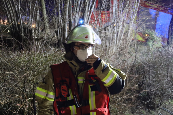 Eine weitere Herausforderung, die es durch die Einsatzkräfte beider Feuerwehren zu meistern galt, war die Rettung einer bewusstlosen Person, die möglichst schonend von einem Dach gerettet werden musste. Auch diese Aufgabe wurde von Kräften beider Wehren erfolgreich absolviert. Gegen ca. 21:00 Uhr konnte durch Einsatzleiter Jan-Peter Fruhen dann das Übungsende verkündet werden. Abschließend waren sich alle Beteiligten einig, dass die Übung sehr gut abgearbeitet wurde und alle Seiten voneinander lernen konnten.