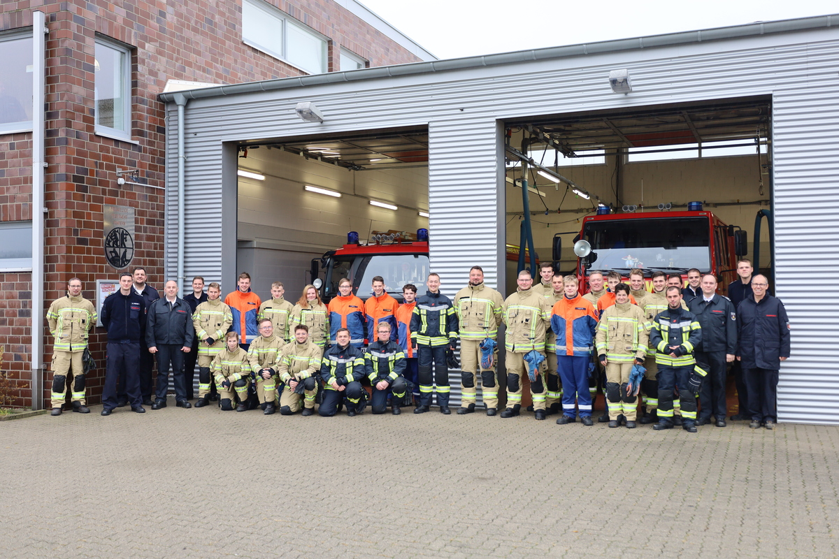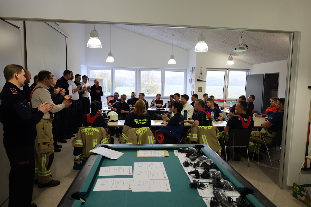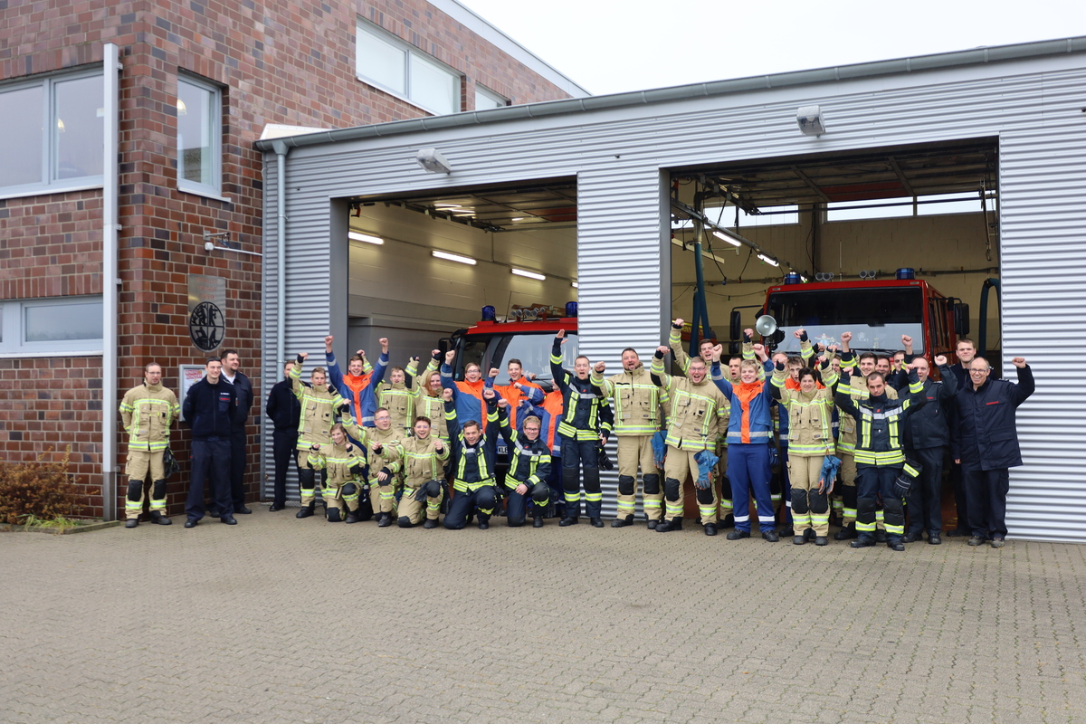 Am vergangenen Samstag (18. November 2023) bestanden 26 Feuerwehrleute aus Kranenburg und Kleve die theoretische und praktische Prüfung des Modul-1-Lehrganges. Der 80 Stunden umfassende Lehrgang hatte am 9. Oktober begonnen und fand wieder komplett in Präsenz statt. Zwei Teilnehmer bestanden sogar mit der Note „sehr gut“. Wegen Sarnierungsarbeiten in der Klever Feuerwache fanden einige Termine in Rindern statt - so auch die Prüfung.