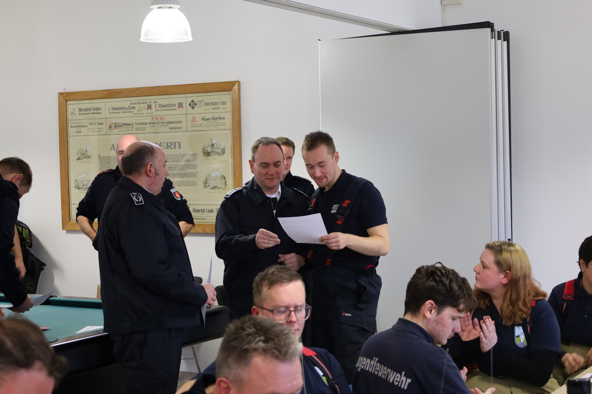 Zur Überbrückung der Zeit während der Auswertung der Prüfungen wurden die Teilnehmer gefragt, was sie motiviert hat, zur Feuerwehr zu kommen: Neben den häufigen Gründen, wie eine „Vorbelastung“ durch Freunde und Familie, waren die Gründe für den Beitritt vielfältig: Manche machten ein Helfersyndrom verantwortlich, andere zogen die Einbindung in die Dorfgemeinschaft oder die Nähe zum Feuerwehrhaus als Grund heran. In einem Fall war es auch ein Nachbarjunge, der ein Versprechen abgerungen hatte, zur Feuerwehr zu gehen.