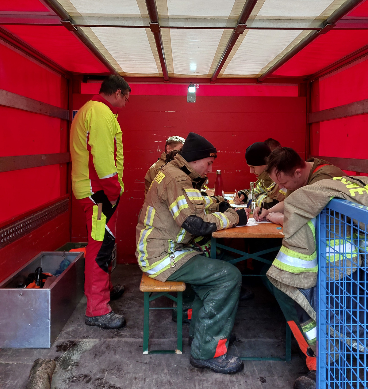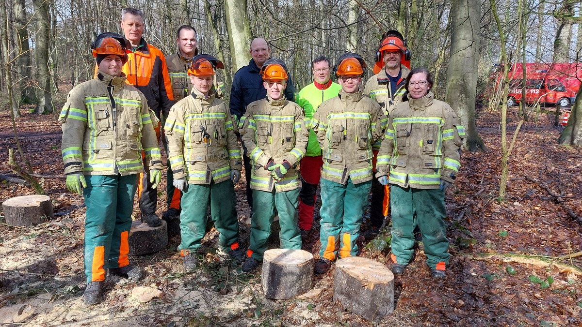 Neben dem Erlernen von Technik und der praktischen Arbeit am Holz mit der Kettensäge, gehörte auch eine praktische und eine schriftliche Prüfung dazu, die gleichfalls im Wald abgehalten wurde. „Neben der schweißtreibender Arbeit bei der Ausbildung kam der Spaß bei den Teilnehmern nicht zu kurz“, stellte der stellvertretende Leiter der Feuerwehr Daniel Scholz beim Besuch im Wald fest.