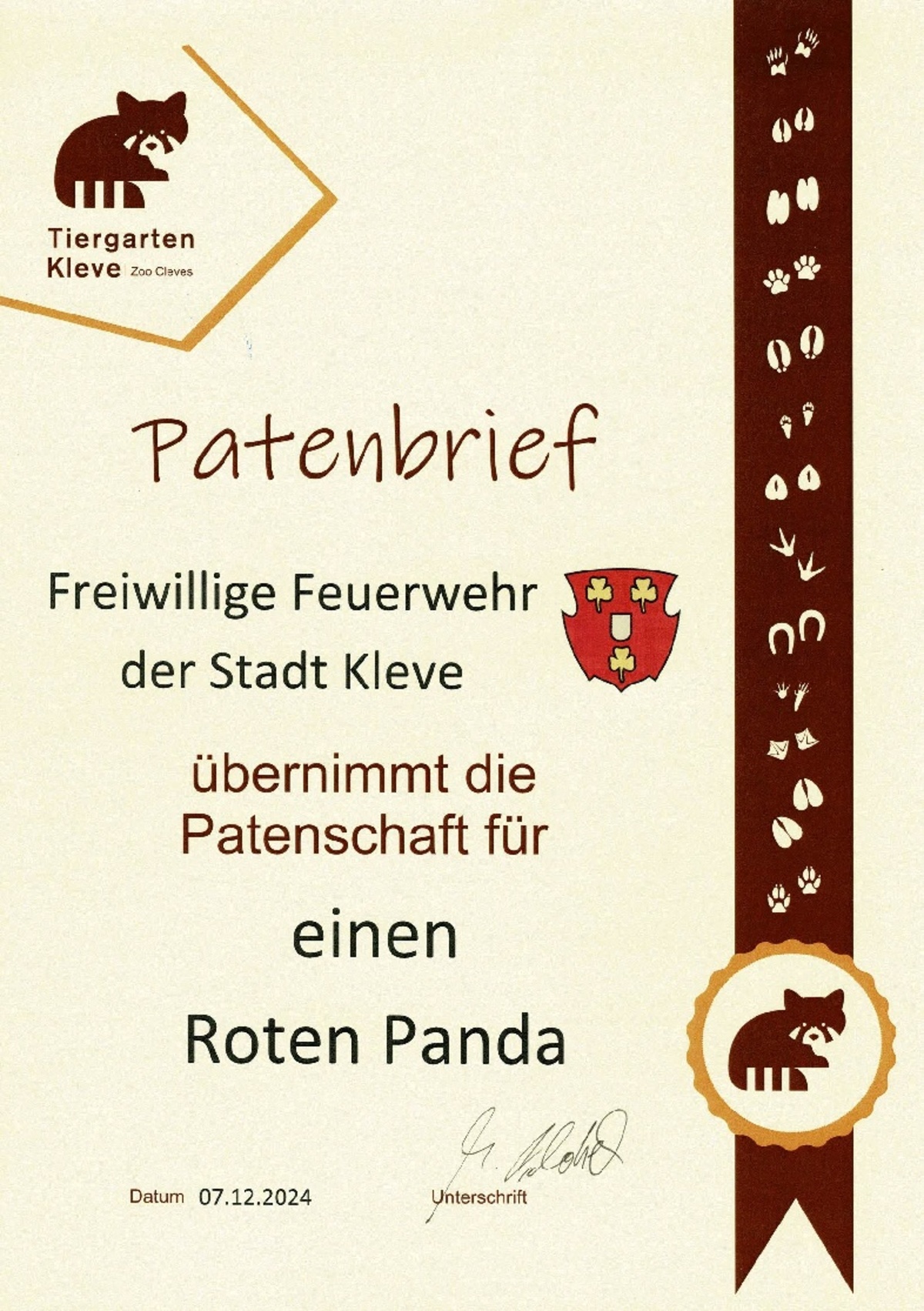 Feuerwehr Kleve erhält Patenschaft für Roten Panda