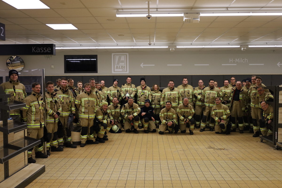 Die Feuerwehr Kleve bedankt sich bei der Firma Aldi für die Gelegenheit zur Übung und die gute Zusammenarbeit.