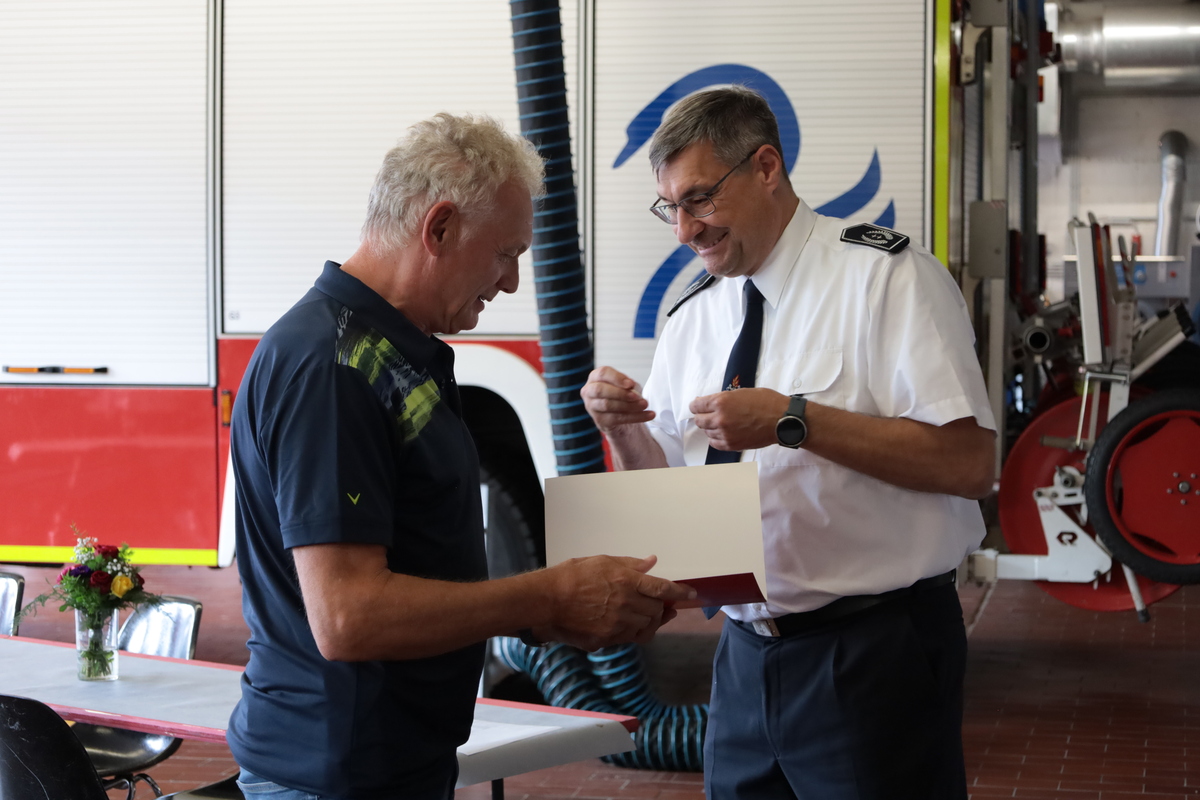 Eine ganz besondere Ehrung galt Karl Nielen für beeindruckende 75 Jahre Mitgliedschaft. Er trat am 1. August 1950 – nur fünf Jahre nach dem Ende des Zweiten Weltkriegs – in die Feuerwehr ein. Seine jahrzehntelange Treue, sein Engagement und seine Verbundenheit zur Feuerwehr verdienen höchsten Respekt und Anerkennung. Mit großer Dankbarkeit durfte ihm der Leiter der Feuerwehr, Ralf Benkel, die Ehrenurkunde überreichen.