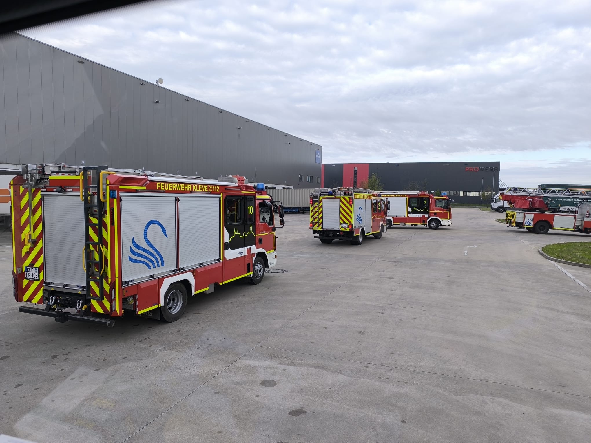 Am Samstagvormittag, dem 18.04.2026, führte die Freiwillige Feuerwehr Kleve im Industriegebiet ein Fahrsicherheitstraining für Großfahrzeuge durch. In der Zeit von 8 bis 13 Uhr nahmen neben den beiden Drehleitern auch zahlreiche Löschfahrzeuge der Klever Ortswehren teil.