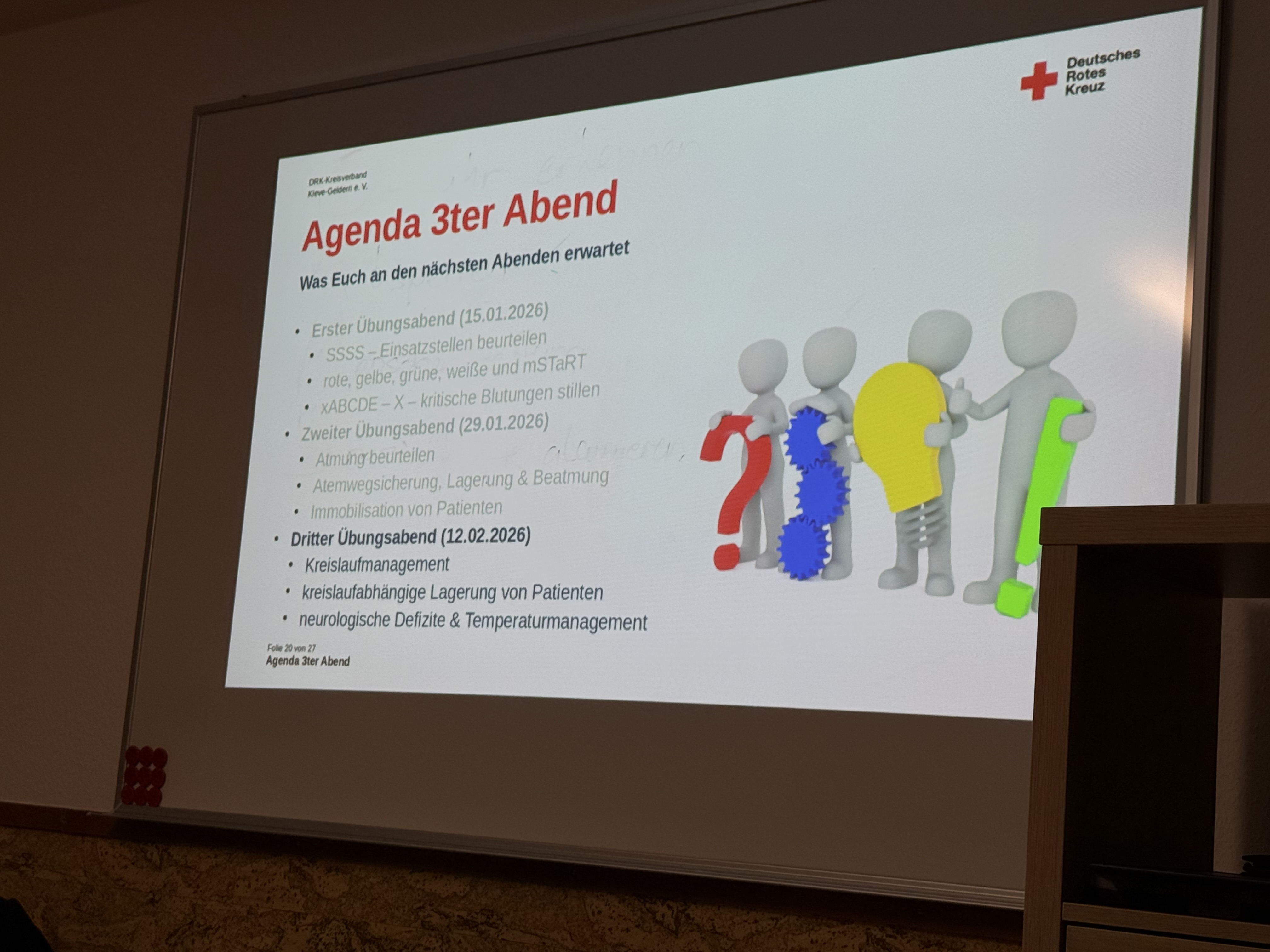 Die Ausbildung fand an drei Übungsabenden im Jahr 2026 statt. In jeweils etwa eineinhalb bis zwei Stunden wurden wichtige Grundlagen der medizinischen Erstversorgung vermittelt und praktisch geübt. Ziel war es, die Einsatzkräfte darauf vorzubereiten, Patienten bei medizinischen Notfällen zunächst selbstständig zu versorgen, wenn externe Hilfe aufgrund der Hochwasserlage nicht sofort verfügbar ist.